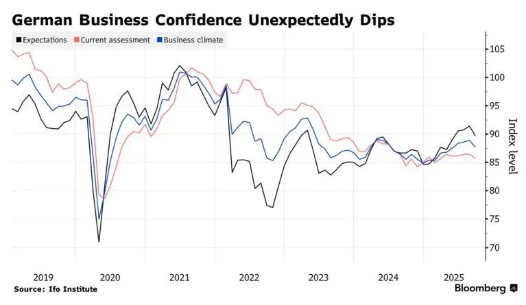 ドイツ企業の景況感は予想外に悪化した。ドイツ経済の回復に取り組むメルツ首相だが、回復の芽が弱いことを浮き彫りにした。
