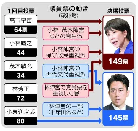 高市氏を選んだ人たちは多分「大きく変える」ということを期待している人々で、選ばなかった人たちはそうではなく緩やかな変化を望んでいるのだろう。