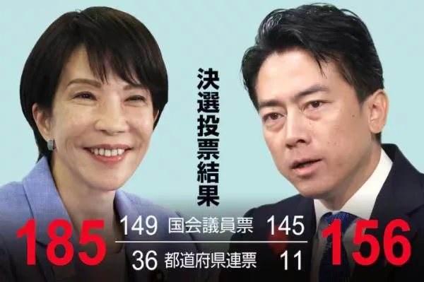 高市氏183票、小泉氏164票、両氏が決選投票へ 自民党総裁選・第1回投票結果