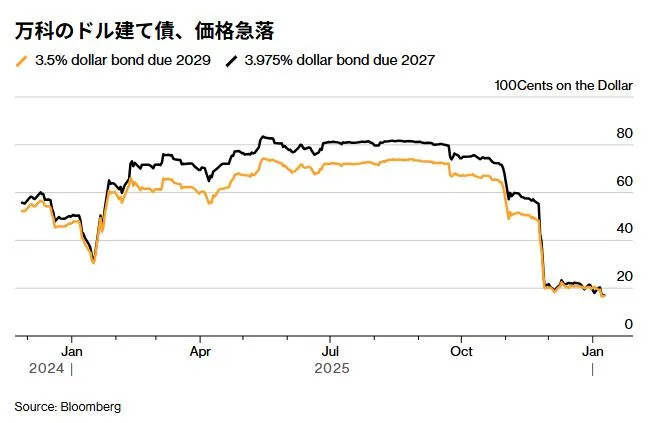 既にドル建て債は急落し、資金繰りは一段と逼迫している。