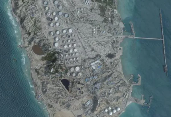 イラン本土から約30キロ離れた小島で、本土の油田とパイプラインで結ばれ、原油の輸出・貯蔵拠点として拡張されている。